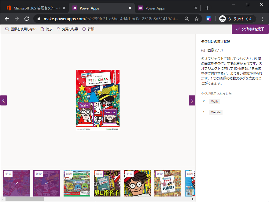 先ほど同様に個々の画像にWendaのタグ付けを実施。「タグ付けを完了」。