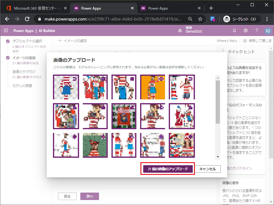 AI Builder の手順をまとめていなかったことを思い出し、手順のまとめがてら AI Builder のオブジェクト検知モデルがどの程度ウォーリーを探す能力を持っているのか試してみます。