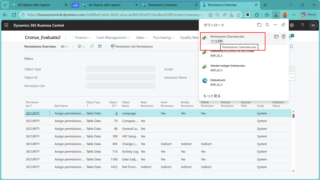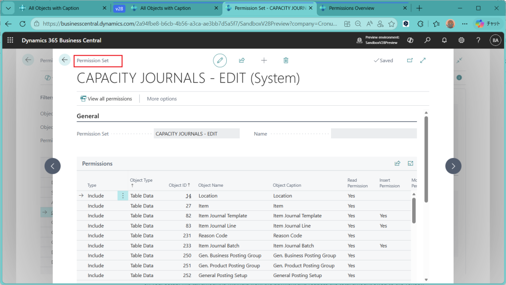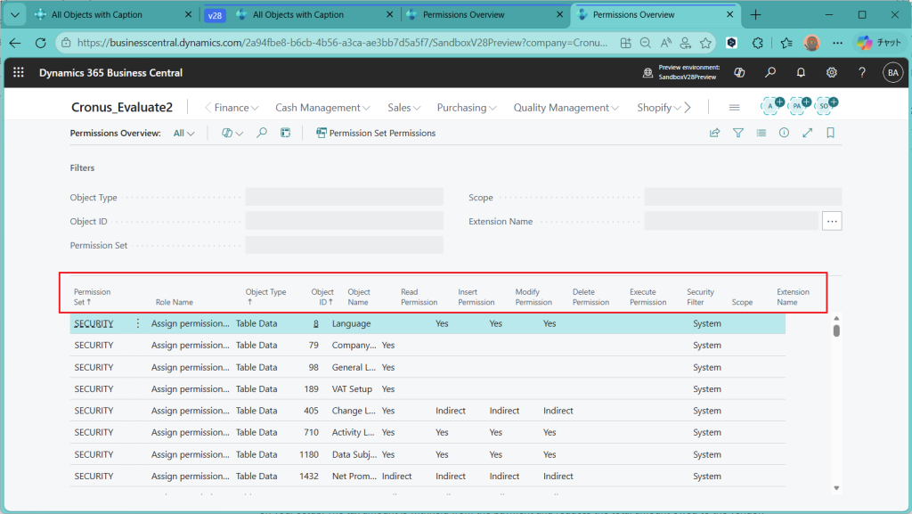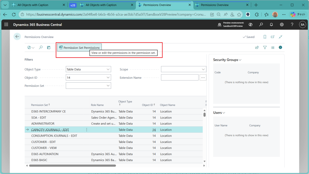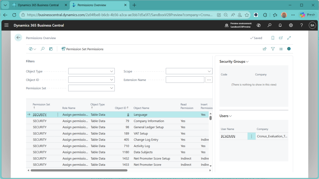D365BC 権限概要ページ