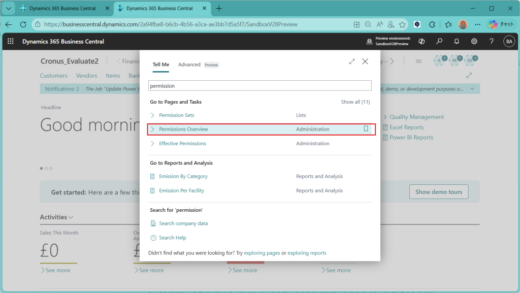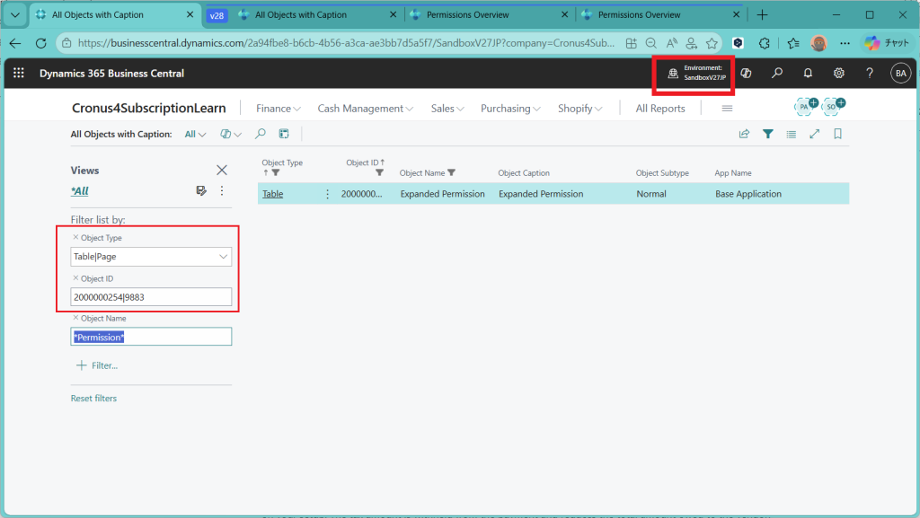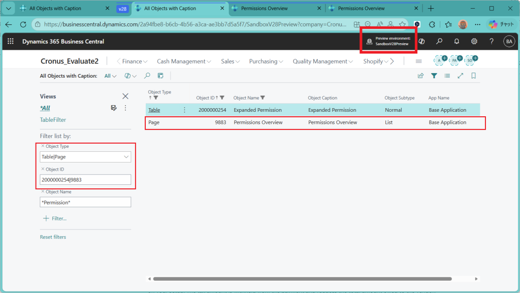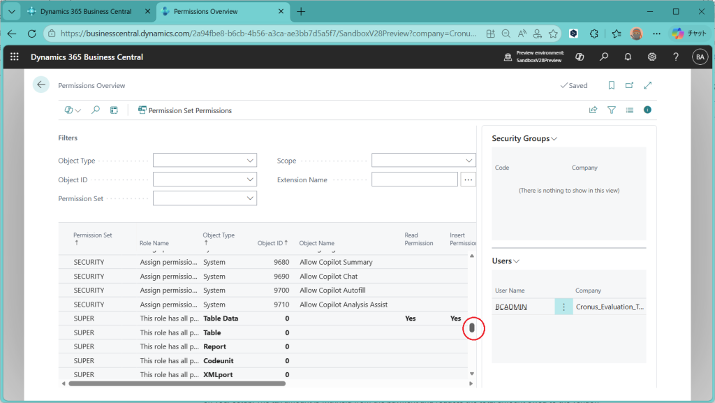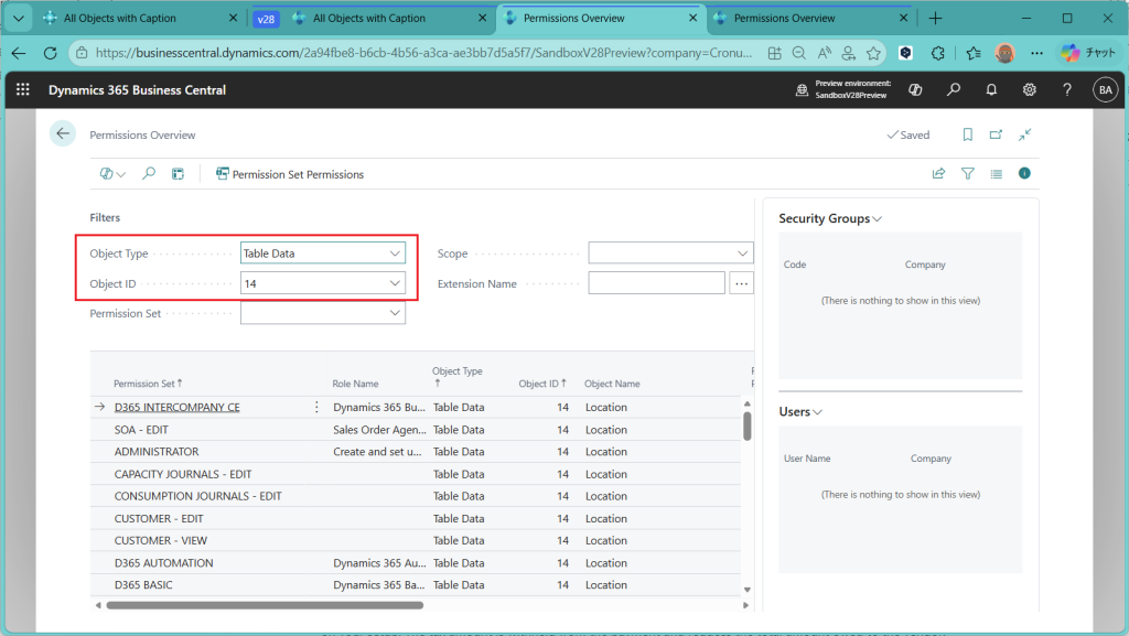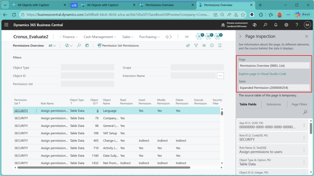 D365BC 権限概要ページ