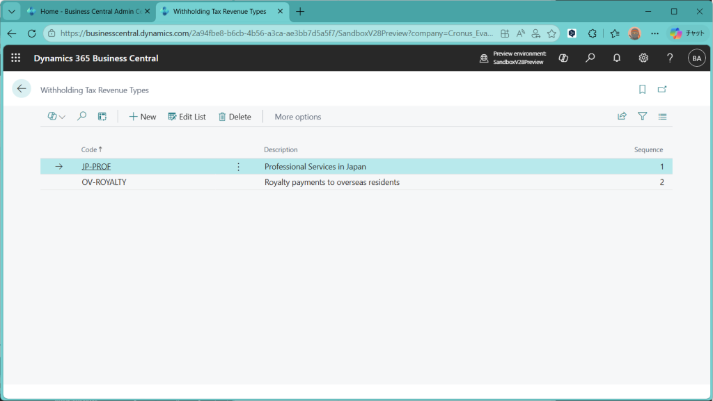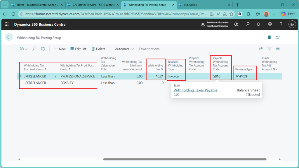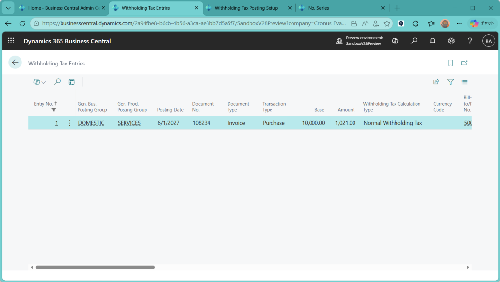 D365BC 源泉徴収税機能(1)