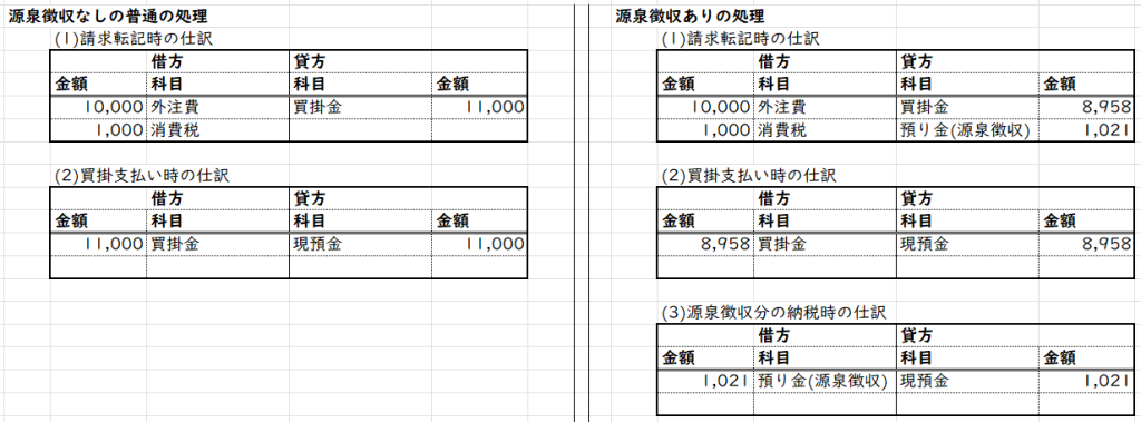 外部への支払い時に発注額を全額払うのではなく源泉徴収額を差し引いてお支払いし、後で国に税を納める、という業務の流れです。