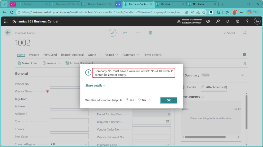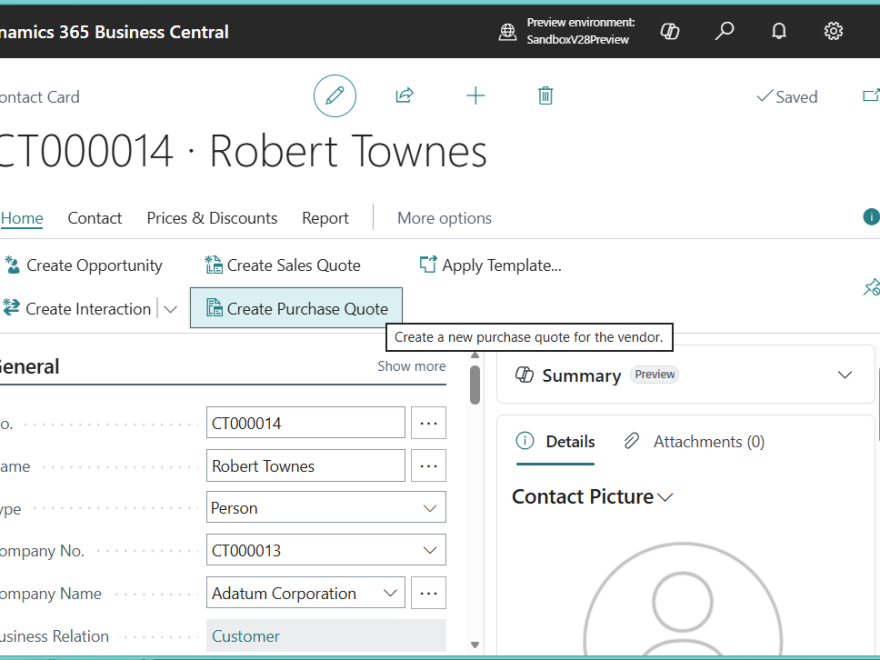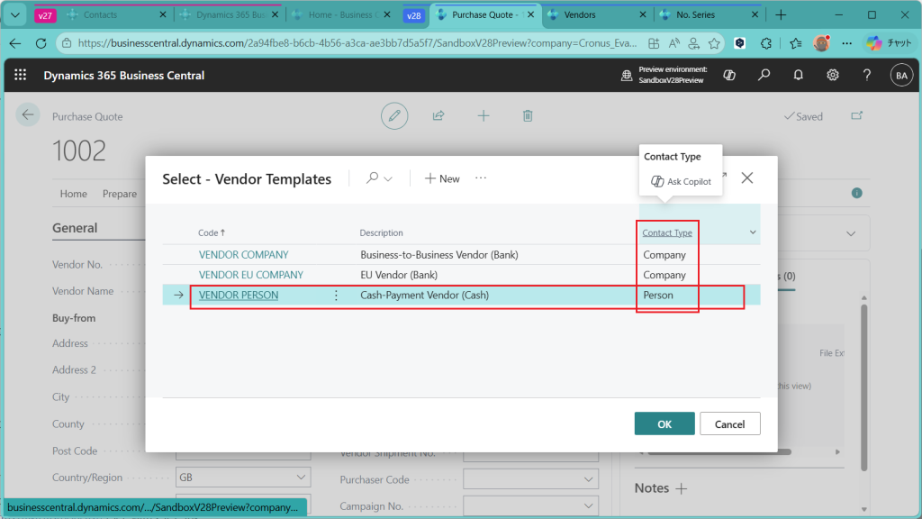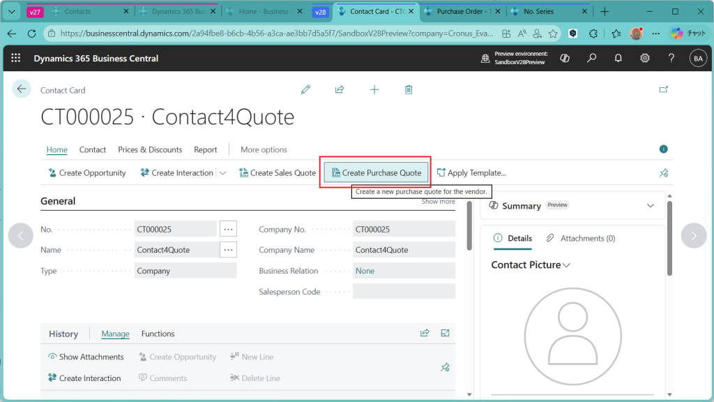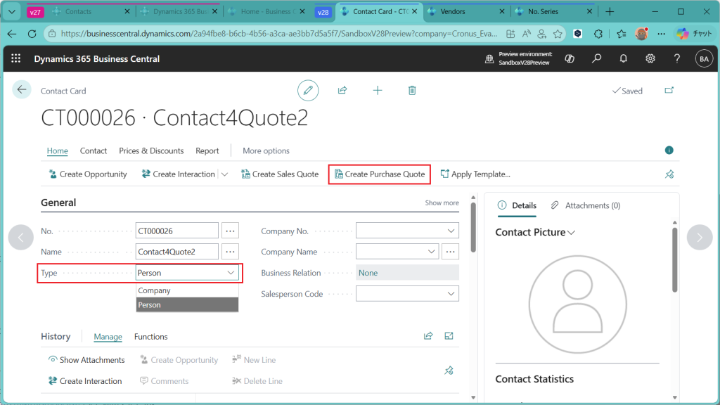 2026 Release Wave 1で連絡先(Contacts)から購買見積を作成する機能が追加されましたので、今回はPreview版で機能を調査した結果を紹介します。連絡先から販売見積を作る機能は従来からありましたが、今回の新機能はそれ発注版です。
