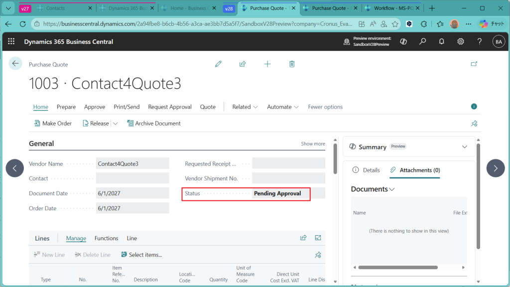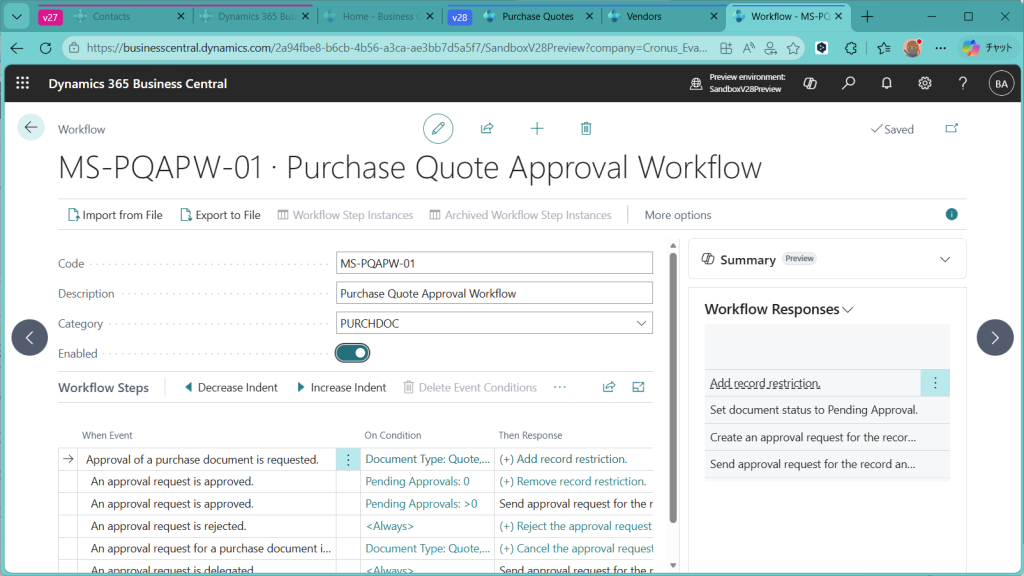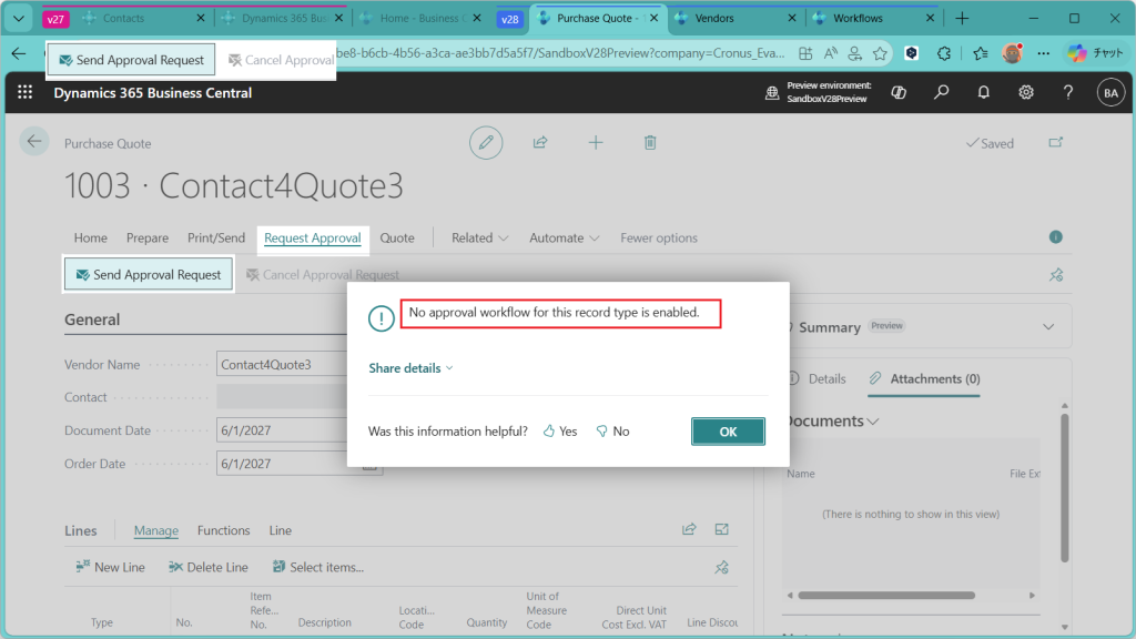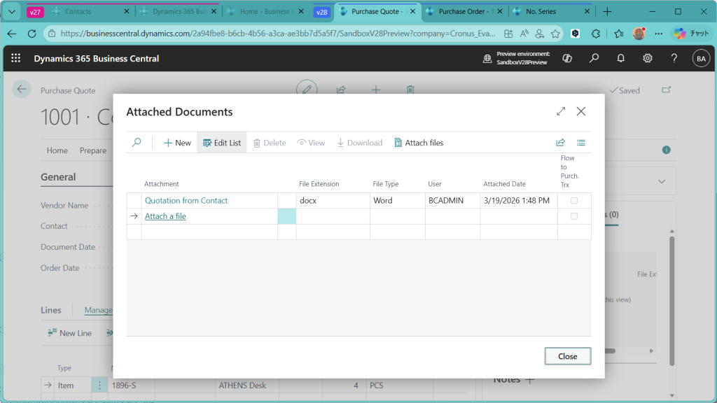 ただ、Business Centralは購買見積の比較機能がそもそも弱いので、今回の新機能の使いどころは正直あまりないかな、、、という感覚です。見積比較の機能を外部連携しているとか、Excel Power Queryでうまいことやっている会社だと有効な機能かもしれません。