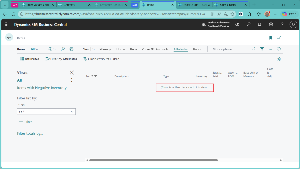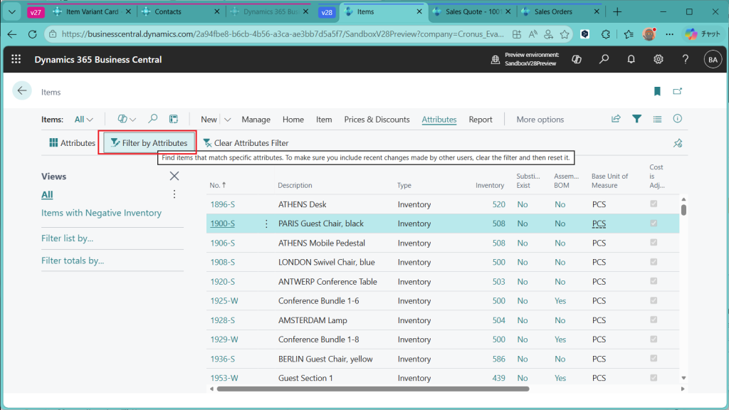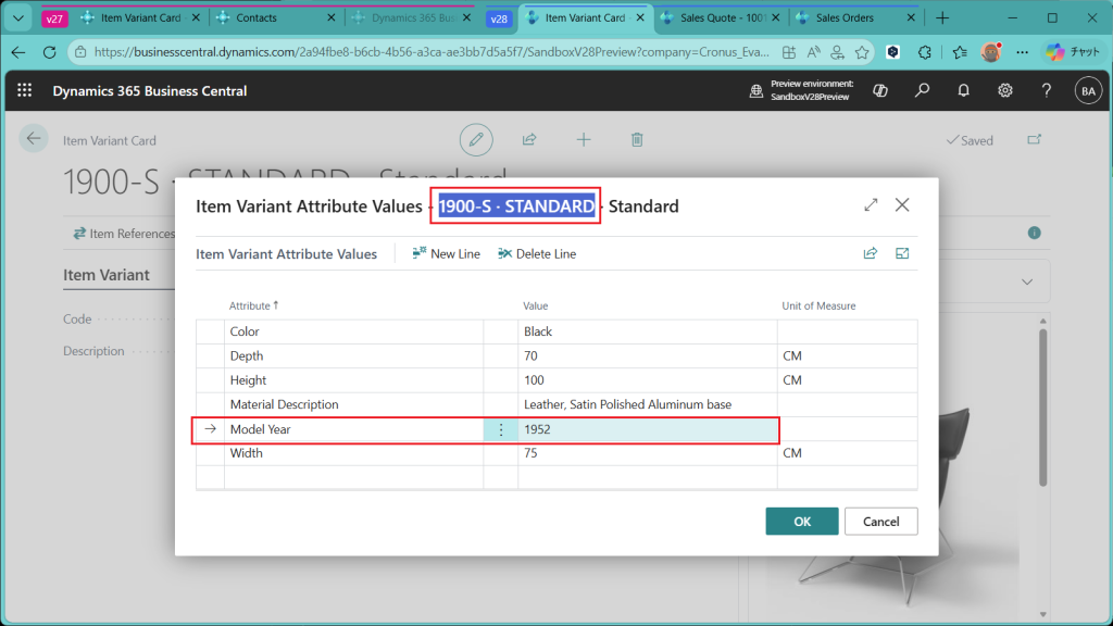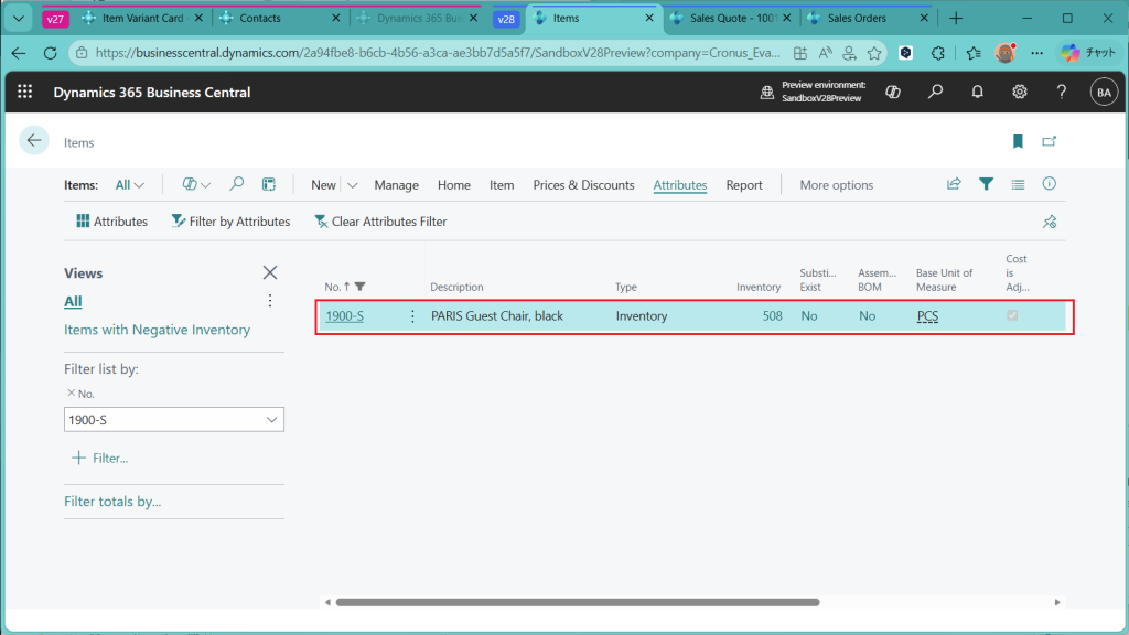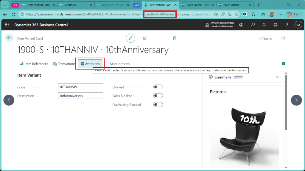 では実際に挙動を見ていきましょう。品目バリアントを呼び出すところまでは前回の記事(D365BC 品目バリアントに画像を追加 | IT長のネタ帳)を参照してください。