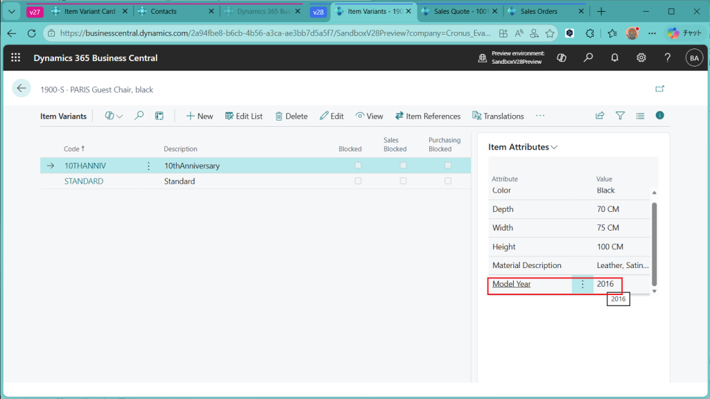 2026 Release Wave 1で品目バリアントに属性情報を定義する機能が追加されましたので、今回はPreview版で機能を調査した結果を紹介します。品目にサイズや色や材質などの属性を登録する機能は従来からありましたが、今回の新機能はバリアントごとに属性情報を登録できます。