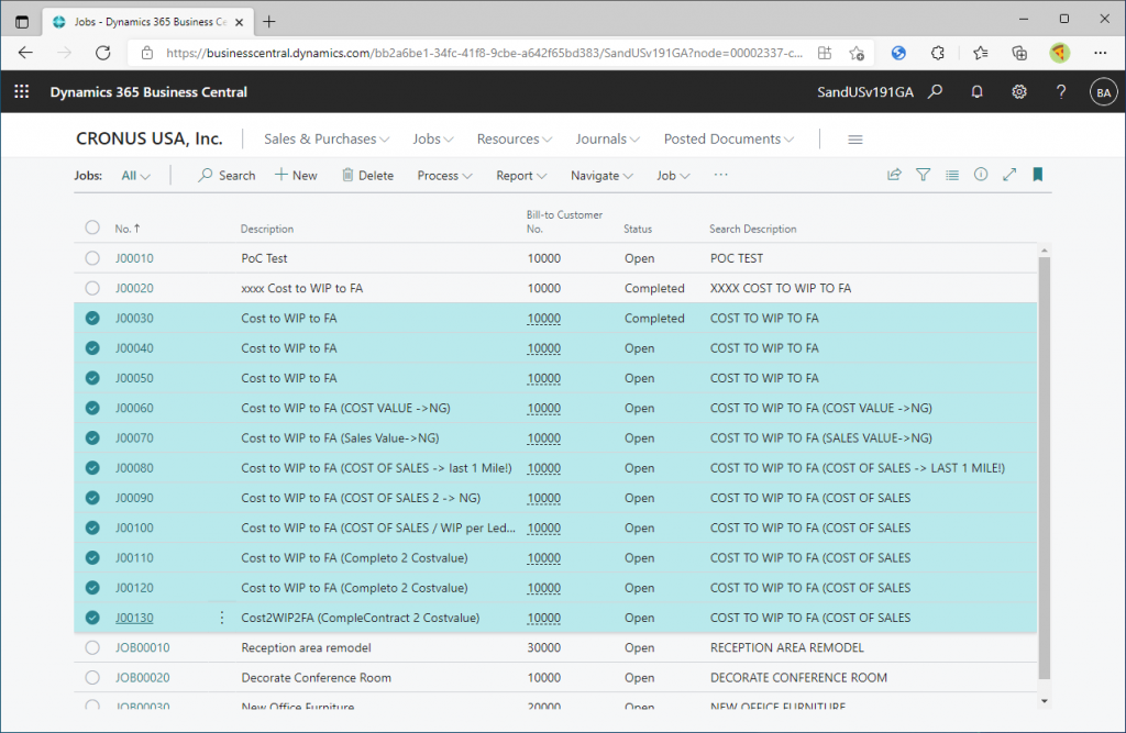 If you try to do this, you would create multiple jobs, set different WIP methods for each job, post the same actual cost data to each job, and execute the WIP calculation. If you make a mistake in the posting date during the WIP calculation, you might have the experience of re-creating a new job, throwing away the WIP-calculated job. Then, many experimental jobs will be created as shown in this image.