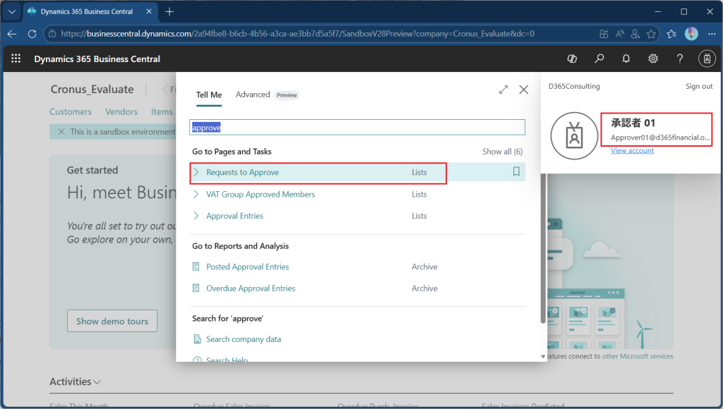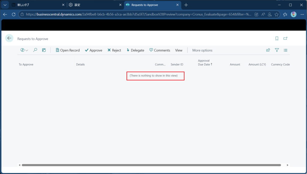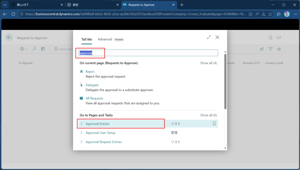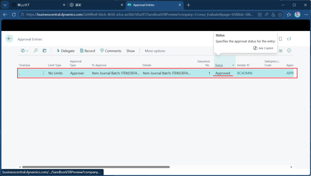 本当に承認されたかどうか不安な場合は”Approval Entries”画面を開きます。